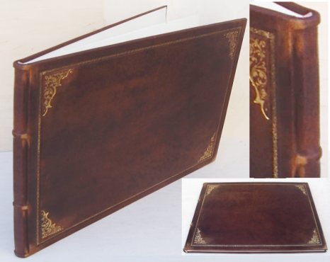 ![]() Oprawa skórzana albumowa, ręczne szycie z listwami - ruchomy grzbiet pozwala na szerokie otwarcie, bez fałd, kart albumu, zwięzy na grzbiecie, kapitałki szyte ręcznie, tłoczenie ornamentów suche i złotem na okładkach Format 32 x 52 cm, 50 kart. papier ozdobny albumowy 180 g/m2 - skóra licowa antykowana - wyklejka z papieru ozdobnego |