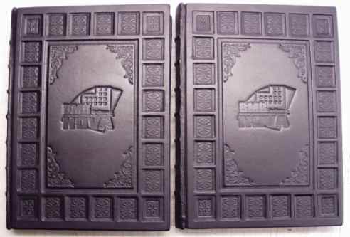 ![]() ![]() Oprawa skórzana z grzbietem zwartym, szycie na taśmy, ułatwiające szerokie (na płask) rozwarcie kart, wysokie zwięzy, wyklejka przeszywana z papieru czerpanego, wzmocniona płótnem i scyzurą, kapitałka płaska szyta ręcznie, logotyp i ornament tłoczony matrycą, tłoczenia ślepe reliefowe. - Format 30 x 38 cm., ok. 100 kart pap. ozdobnego 160 g/m2. - skóra cielęca - wyklejka z papieru czerpanego |
