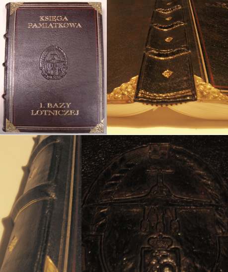 ![]() Oprawa skórzana, szycie na sznury, prawdziwe wysokie zwięzy na zdobionym grzbiecie, kapitałki szyte ręcznie, okucia mosiężne narożnikowe, tłoczenia suche godła i złocona tytulatura na okładce przedniej Format B3+, 300 kart, papier ozdobny 120 g/m2 - skóra licowa - wyklejka z papieru ozdobnego |