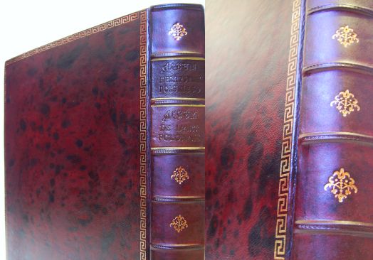 ![]() Oprawa ze skóry stylizowana albumowa, kapitałka szyta ręcznie, tłoczenia ślepe i złotem, stylizacja okładek, barwienie brzegów kart. - Format folio - skóra naturalna ręcznie marmoryzowana - wyklejka papier ręcznie antykowany |