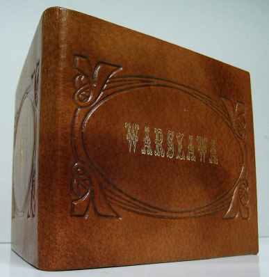 ![]() Oprawa skórzana stylizowana, wyklejka z papierów ręcznie marmoryzowanych, tłoczenia tytulatury złotem na okładce, zdobienia suche i złotem, barwione krawędzi plansz. Edycja limitowana. - Format ca B4 - skóra licowa ręcznie antykowana |