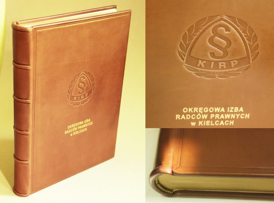 ![]() Oprawa skórzana, karty szyte ręcznie, wysokie zwięzy na grzbiecie, kapitałki szyte ręcznie, tłoczenia ślepe i złotem, barwione brzegi kart Format ca 30 x 42 cm, ca 220 kart - skóra naturalna - wyklejka z papieru ozdobnego |